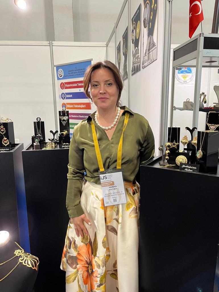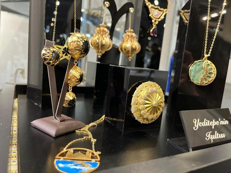 Ana koleksiyonda yer alan broş, Cerrahpaşa Camisi’nden, kolyelerimiz Mihrimah Sultan, Fatih, Nur-u Osmaniye ve Sultanahmet mescitlerinden, küpeler Süleymaniye ve Yavuz Sultan Selim mescidinden esinlenerek yapıldı. Takılarda pirinç ve gümüş kullandık. Ayrıyeten eserlerimizin süslemelerini oluşturmak ve renklendirmek için klasik bir yol olan ‘mine tekniği’ni tercih ettik. Yeşim ve atom taşları da takılarda yer aldı. Fuarda takılarımız satılmıyor lakin ön sipariş alıyoruz. Takılarımızı 50 ile 100 dolar ortasında yani yaklaşık bin 910 ile 3 bin 810 lira ortasında satmayı planlıyoruz.”