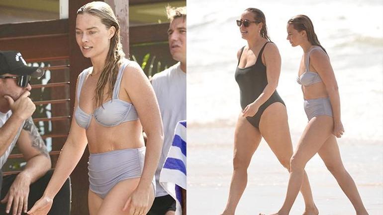 Margot Robbie doğum kilolarını vermiş olsa da yüksek aşikâr bir bikini tercih ettiği ve karnını kapattığı dikkatlerden kaçmadı.