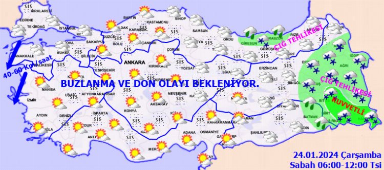Yağışların; Şırnak ve Siirt’in doğusu, Van’ın güneyi ile Hakkari ve Bitlis çevrelerinde yer yer yoğun kar şeklinde olması bekleniyor. Sabah ve gece saatlerinde kuzey, iç ve doğu kesimlerde pus ve yer yer sis ile birlikte iç ve doğu bölgelerde buzlanma ve don olayı görüleceği tahmin ediliyor.